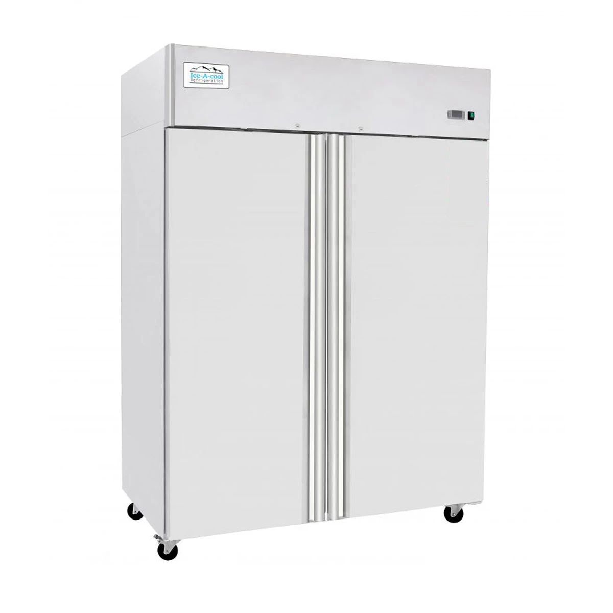 L’armoire est équipée d’un thermostat numérique de marque Dixell/Carel, vous permettant de contrôler facilement la température intérieure. Le système de refroidissement ventilé assure une répartition uniforme du froid dans toute l’enceinte, garantissant une conservation optimale des aliments à une température intérieure réglable entre -22°C et -18°C. Cette armoire réfrigérée fonctionne avec une puissance de 350 W et une tension de 220V – 50 Hz, adaptée aux normes électriques courantes. Elle est équipée de 4 roues avec freins, ce qui facilite son déplacement et sa stabilité une fois en place.