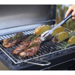 Doté d’un châssis bi-matière en inox satiné et acier peinture époxy coloris noir, ce barbecue est à poser sur meuble de cuisine, desserte ou surface en matériau réfractaire. Il est également équipé d’un couvercle de protection à charnières pour vous permettre de le fermer après usage. Avec une grille de 60 x 40 cm, il peut accueillir 6 à 10 couverts. Ses dimensions sont de 72 x 60 x 71 cm pour un poids de 34 kg.