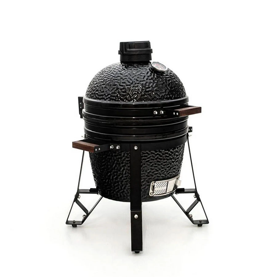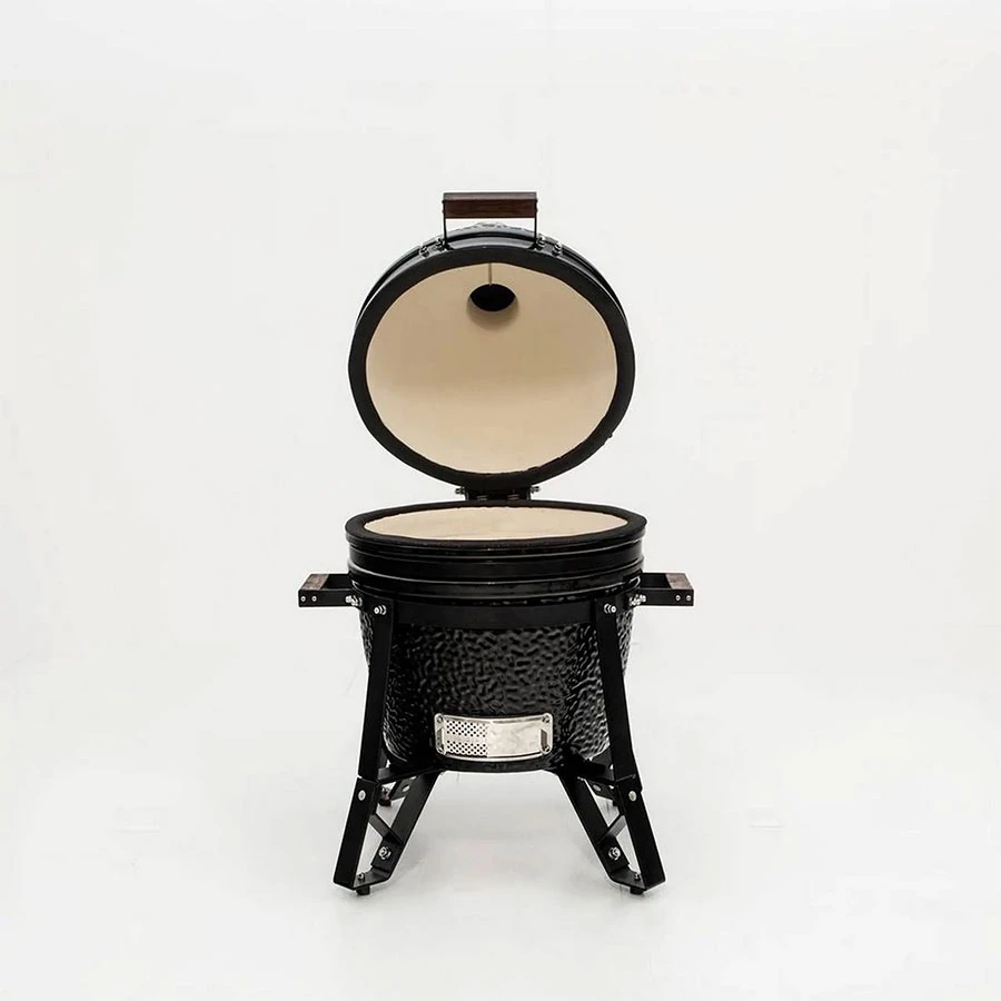 Équipé de 2 demi déflecteurs de chaleur en céramique émaillée, d’un bac à cendres en acier inoxydable et d’un thermomètre à aiguilles, ce barbecue kamado est simple d’utilisation et facile à nettoyer. En somme, c’est l’appareil parfait pour les amateurs de grillades qui aiment organiser des repas en petit comité et qui ont besoin d’un barbecue compact et facile à transporter.