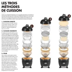 Sa grille de 46 cm permet de cuisiner pour 2 à 8 convives, avec une température réglable de 70°C à 400°C.