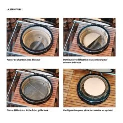 Ce barbecue kamado comprend une technologie unique Ă sa fabrication. Ses matĂ©riaux, sa forme et sa structure permettent de crĂ©er un effet de cheminĂ©e pour Ă©vacuer la fumĂ©e souhaitĂ©e, et la cĂ©ramique offre une excellente isolation. De plus, le systĂšme dâalimentation se fait au pellet ce qui permet un temps de chauffe plus long et la possibilitĂ© dâeffectuer des fumages Ă chaud.