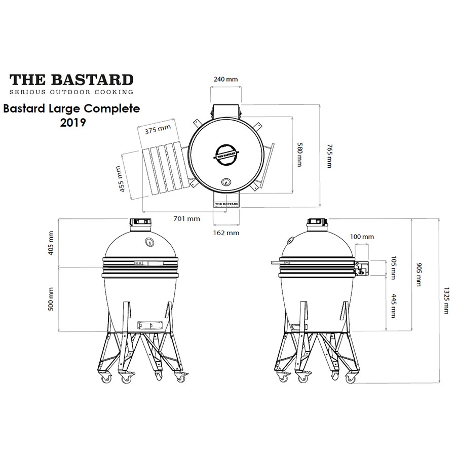 Découvrez le barbecue kamado sur chariot Classic Large ø49 cm The Bastard, le choix idéal pour les amateurs de grillades qui souhaitent cuisiner pour un grand nombre de convives. Fabriqué aux Pays-Bas, ce barbecue kamado est équipé d’une grille de cuisson de ø49 cm et peut accueillir entre 2 et 8 convives grâce à sa surface de cuisson totale de 1886 cm². La cuve et le couvercle en céramique cordiérite sont résistants aux intempéries et aux chocs de température, et sont garantis à vie limitée (20 ans). La grille de cuisson en inox a une épaisseur de 7 mm pour une cuisson homogène et rapide. Ce barbecue fonctionne uniquement avec du charbon de bois.