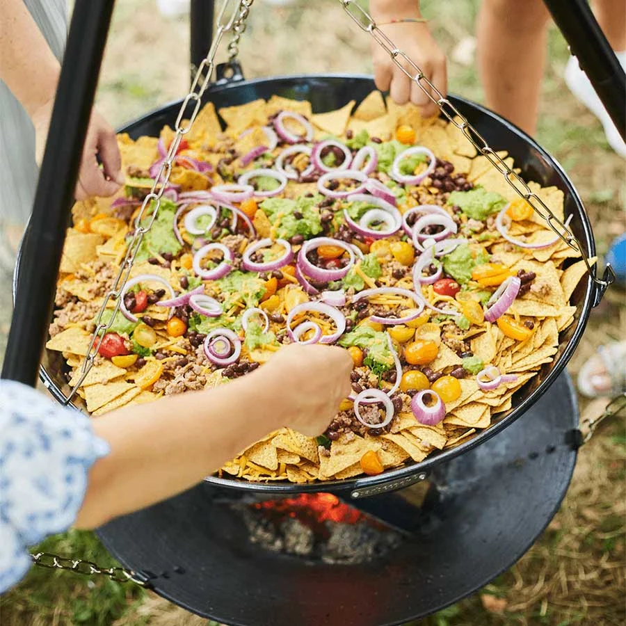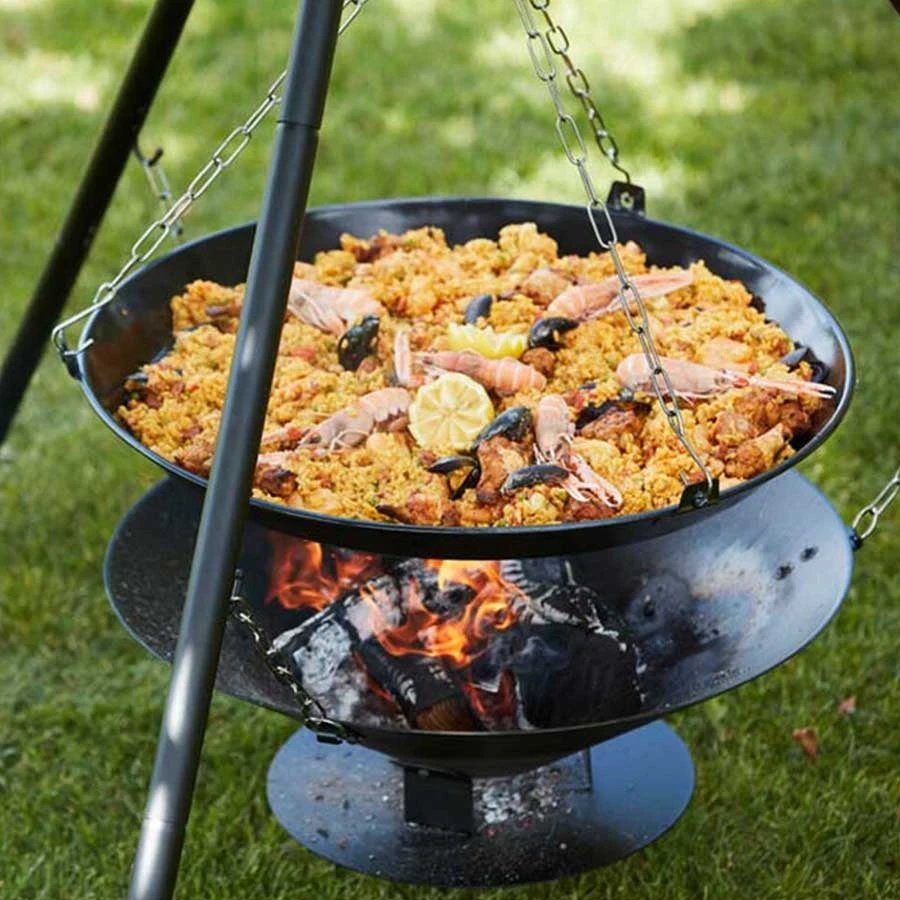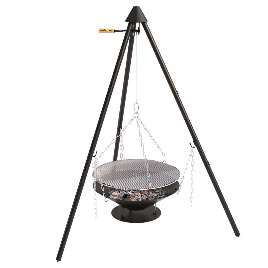 Avec son design moderne, ce brasero se compose dâun trĂ©pied, dâune cuve pour accueillir le bois et dâune grille de cuisson, offrant ainsi une expĂ©rience de cuisson unique. Facile Ă assembler Ă lâaide des chaĂźnes et des crochets inclus, vous pourrez trĂšs rapidement dĂ©guster des grillades cuites Ă la perfection. FabriquĂ©s en fonte, le trĂ©pied et la cuve du brasero dispose dâune excellente rĂ©sistance Ă la chaleur en plus dâune grande soliditĂ©, vous assurant de garder votre brasero longtemps.