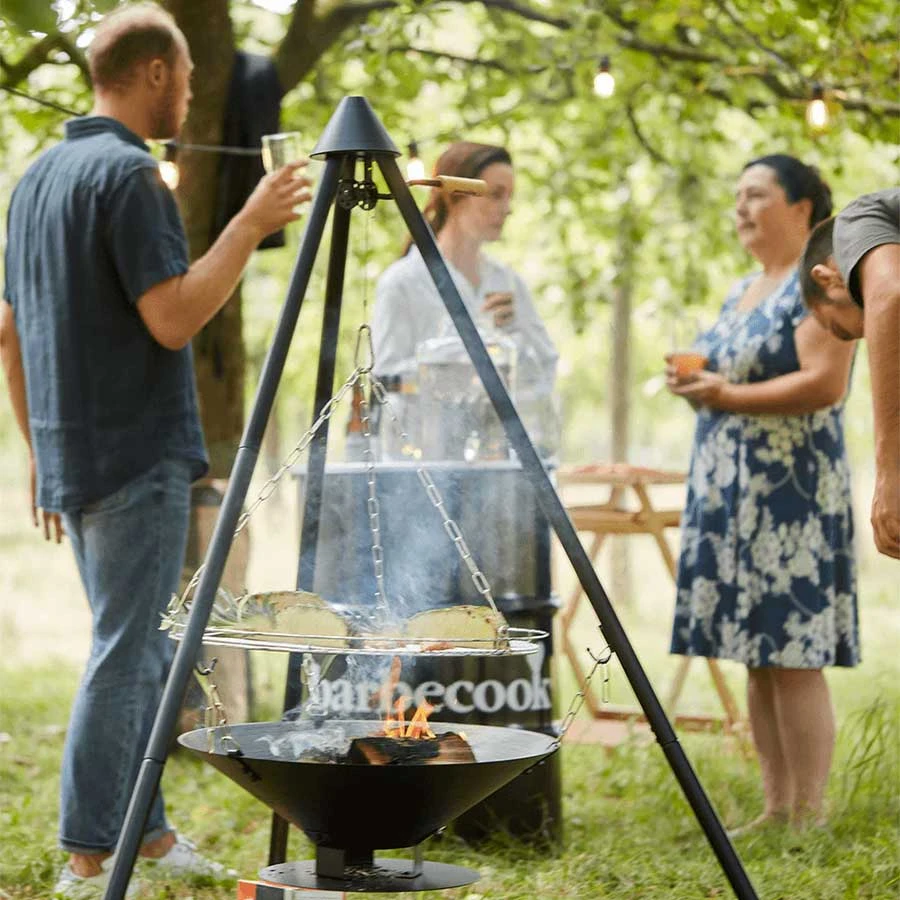 PrĂ©sentation du brasero barbecue suspendu en fonte â 60 cm Junko Barbecook
