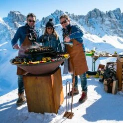 Avec des dimensions de 85 x 85 x 103 cm, installez ce brasero où vous le souhaitez. La hauteur de la plaque de cuisson à près de 1 m de haut permet de cuisiner sans effort vos aliments (viande, légumes, poissons, etc.). Les dimensions du socle du brasero sont de 45 x 45 x 78 cm, ce qui laisse une place importante à la partie cuisson. La cuve en acier corten fournit ainsi un grand espace pour des buches de 33 cm ou du charbon de bois sans que vos aliments entrent en contact avec les flammes du brasero.