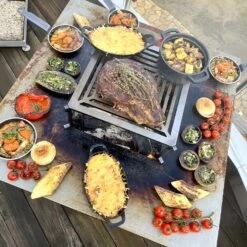 Parfait pour organiser des repas avec quelques amis ou en famille, ce brasero dispose d’une plaque de cuisson carrée de dimensions 74 x 74 cm, offrant une surface de cuisson de 0,45 m², idéale pour accueillir 6 à 8 convives. Fabriquée en acier d’épaisseur 10 mm, la plaque bénéficie d’une très grande inertie thermique qui offrira une cuisson homogène pour tous vos plats favoris. La cuve du brasero est fabriquée en aluminium thermolaqué d’épaisseur 3 mm à l’extérieur, tandis que l’intérieur a été réalisé en acier inoxydable, offrant ainsi au brasero une très grande résistance à la chaleur doublée d’un style inimitable.