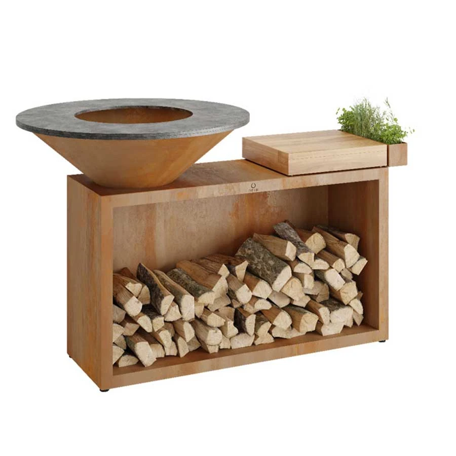 Caractéristiques du brasero plancha Ofyr Island 85 Corten et bois de Teck