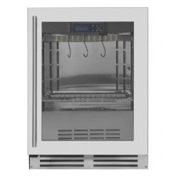Construite en acier inoxydable durable, cette cave de maturation est résistante et facile à entretenir. Avec une épaisseur d’isolation de 45 mm, elle maintient une température et une humidité constantes pour une maturation parfaite de la viande. La porte verrouillable et réversible offre flexibilité et sécurité, tandis que l’éclairage LED interne et l’affichage LCD facilitent le suivi du processus de maturation.