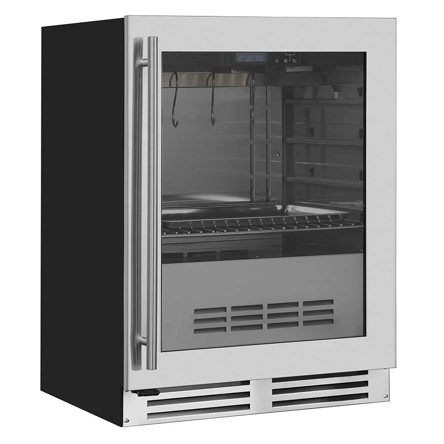 La Cave de Maturation Combisteel utilise un système de refroidissement forcé, garantissant une température stable entre 1 et 25°C à régler à votre convenance selon les aliments que vous souhaitez conserver. Avec une humidité relative comprise entre 60% et 85%, vos pièces de viande bénéficieront d’une maturation uniforme.