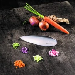 Finition satin pour une touche de modernité et une résistance aux rayures, prise en main rapide et instinctive, le couteau Primitive est votre meilleur allié en cuisine.