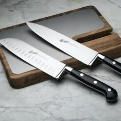 Le couteau Santoku Adhoc Berkel, avec une lame de 18cm, permet de trancher, ciseler et Ă©mincer. Les alvĂ©oles permettent aux aliments de se dĂ©tacher aisĂ©ment au fil de la dĂ©coupe grâce aux coussins d’air contenus Ă l’intĂ©rieur.Â