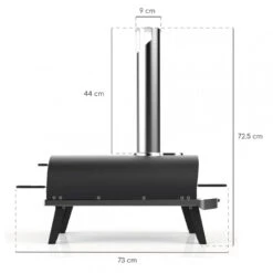 Ce four à pizza est fabriqué en acier inoxydable, un matériau largement utilisé en cuisine pour sa résistance aux chocs et à la chaleur. Il possède un design élégant et original qui s’intègrera parfaitement à votre espace extérieur. Une fois assemblé, ses dimensions sont de 73 x 40 x 72,5 cm, ce qui vous permet de l’installer où vous le souhaitez, que ce soit sur une table ou une desserte appropriée. Il fonctionne avec des pellets de bois qui offrent d’excellentes performances en termes de chaleur, ce qui permet au four de rester allumé pendant de longues périodes et d’atteindre des températures allant jusqu’à 400°C. Vous avez également la possibilité de remplacer les pellets par des bûchettes adaptées au tiroir à combustible.