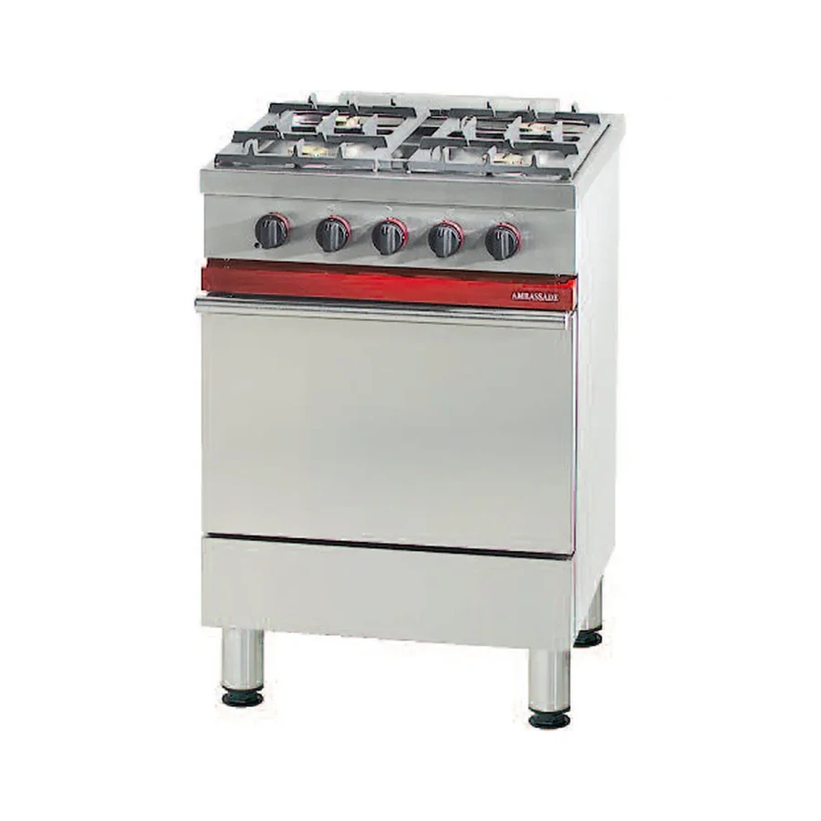 Idéal pour constituer une véritable cuisine professionnelle, ce fourneau 4 feux vifs 1 four gaz Ambassade de Bourgogne s’adapte à toutes les configurations de cuisine. Grâce à ses dimensions de L 600 – P 650 – H 900 mm, il peut s’installer facilement même dans une cuisine déjà très chargée. Et grâce à ses pieds en acier inoxydables munis de vérins réglables, votre meuble sera toujours à la hauteur optimale pour cuisiner avec confort.