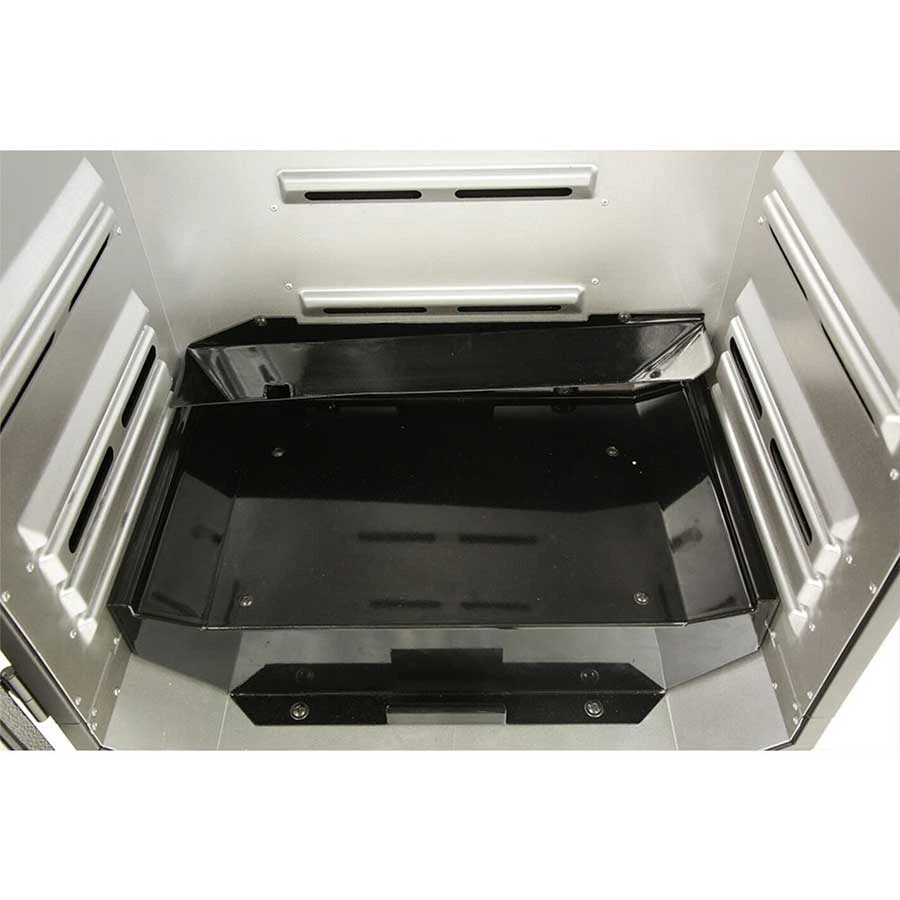 Afin d’offrir au fumoir une capacité de cuisson idéale, Pit Boss l’a muni de 4 grilles de cuisson en fonte émaillée amovibles de dimensions 52,1 x 33,3 cm, lui offrant ainsi une surface de cuisson de 6948 cm². Lors de la cuisson, un déflecteur de chaleur va séparer la source de chaleur et les aliments pour une gestion plus efficace de la température. Ce bouclier va également faire tomber les graisses vers un bac récupérateur amovible, garantissant un nettoyage facile.