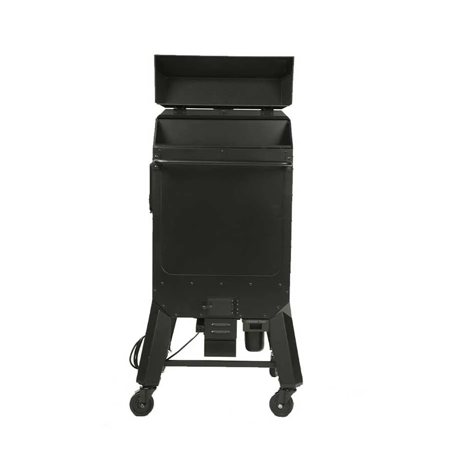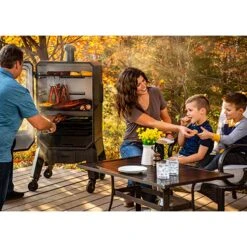 Fabriqué en acier avec revêtement époxy, cet appareil de cuisson dispose d’un design simple et compact grâce à ses dimensions de 68 x 66 x 124 cm. Avec un poids de 55 kg, le fumoir s’avère très facile à déplacer pour vous permettre de l’installer où vous le souhaitez. Pour une utilisation prolongée, le fumoir a été équipé d’un réservoir d’une capacité de 29 kg. De quoi stocker suffisamment de pellets pour 40 h de fumage d’affilée.