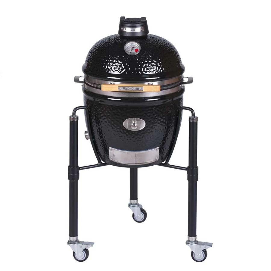 Le barbecue Monolith junior pro 2.0 avec chariot est en cĂ©ramique, ce qui donne aux aliments une saveur particulière et unique aux kamados. Les barbecues kamado sont nĂ©s au Japon il y a plus de 3000 ans, puis se sont modernisĂ©s aux États-Unis après la seconde guerre mondiale, oĂą le barbecue en cĂ©ramique a Ă©tĂ© mis au point. Grâce Ă ce matĂ©riau, la chaleur et la fumĂ©e restent Ă l’intĂ©rieur du barbecue, et peuvent ĂŞtre très facilement contrĂ´lĂ©es grâce au thermomètre. La tempĂ©rature est rĂ©glable entre 70 °C et 400 °C. La grille de 33 cm permet de cuisiner pour 2 Ă 4 convives.Â