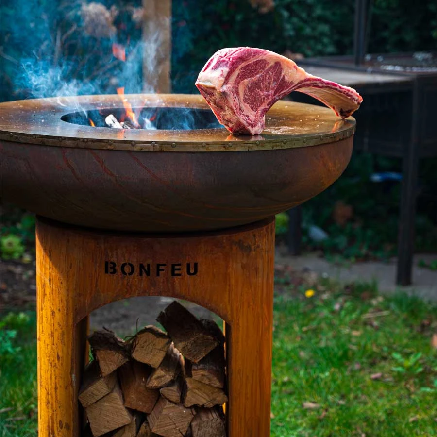 - Le brasero BonFeu BonBiza ouvert en acier corten. Ce brasero est équipé d’un espace de stockage où vous pourrez déposer vos bûches pour toujours avoir de quoi alimenter votre foyer pendant que vous cuisinez. Et grâce à sa structure en acier corten, ce brasero s’avèrera très facile d’entretien.