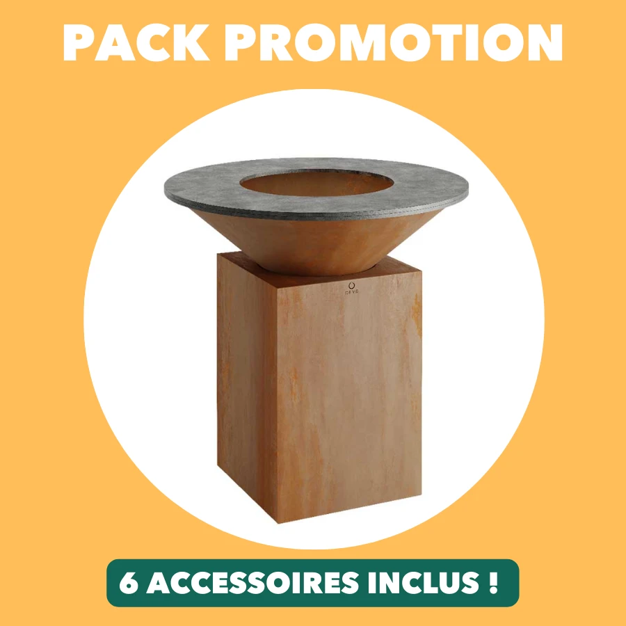 - 1 brasero plancha Classic Corten 100 Ofyr. Ce brasero polyvalent est Ă©quipĂ© dâune grande plaque de cuisson dâun diamĂštre de â 100 cm en acier carbone. Avec une Ă©paisseur de 12 mm, il assure une rĂ©partition homogĂšne de la chaleur pour des cuissons prĂ©cises, adaptĂ©es Ă tous types dâaliments. Sa surface de cuisson gĂ©nĂ©reuse est idĂ©ale pour rĂ©galer entre 14 et 16 convives.