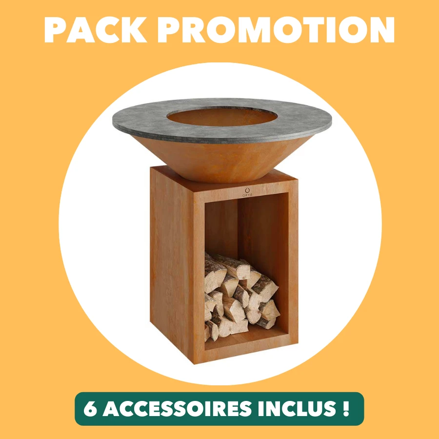 - 1 brasero plancha Classic Storage Corten 100 Ofyr. Ce brasero est Ă©quipĂ© dâune plaque de cuisson en acier carbone dâune Ă©paisseur de 12 mm, offrant des performances de cuisson exceptionnelles pour 14 Ă 16 convives. Son socle intĂšgre Ă©galement une unitĂ© de stockage pratique qui vous permettra dâavoir vos bĂ»ches Ă portĂ©e de main, vous assurant ainsi un approvisionnement constant en combustible pendant lâutilisation de votre brasero.