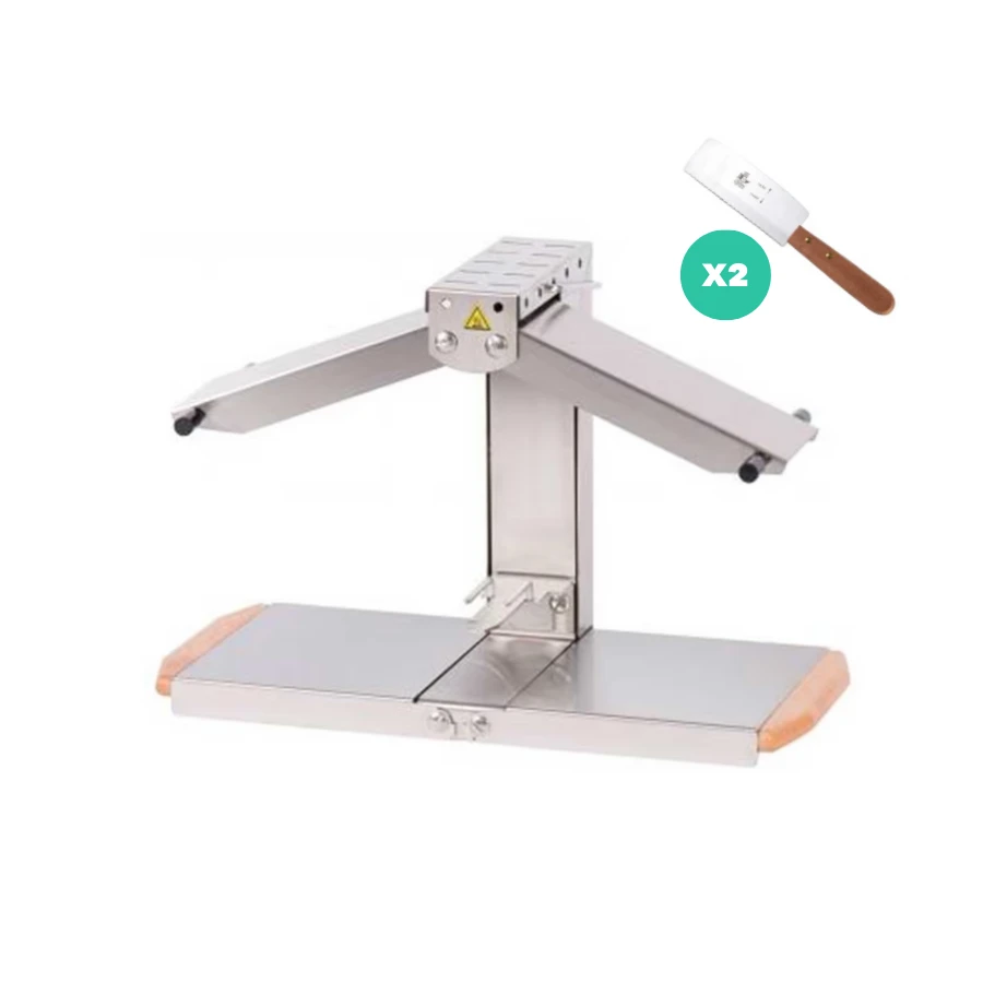 🍴 Couteaux inclus : Pour parfaire votre expérience, ce pack est livré avec deux couteaux de haute qualité. Idéal pour trancher délicatement le fromage et le racler dans votre assiette. Leur manche ergonomique offre une prise en main confortable, rendant chaque coupure nette et précise.