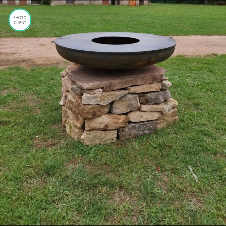 - 1 brasero bol Ă feu coloris corten BonBowl 80 Bonfeu. Avec son design simple et soignĂ©, ce bol Ă feu pourra vous servir de chauffage dâextĂ©rieur toute lâannĂ©e. Ses dimensions de â 80 x H21 cm offrent une grande capacitĂ© pour dĂ©poser votre bois. Ce brasero peut ĂȘtre Ă©quipĂ© de nombreux accessoires pour le transformer en un appareil de cuisson au feu de bois polyvalent. Son coloris rouille apporte une touche rustique Ă votre extĂ©rieur qui surprendra tous vos invitĂ©s.