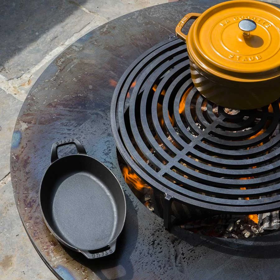 - Grille de cuisson ronde pour brasero Ofyr 100. Avec sa conception en fonte, cette grille peut absorber beaucoup de chaleur afin d’offrir à vos aliments une cuisson homogène en plus d’offrir à votre brasero plancha les possibilités de la cuisson directe.