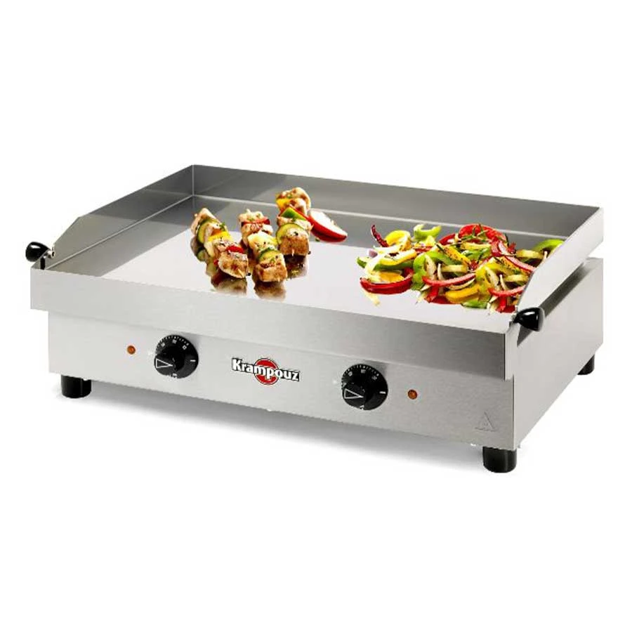 Pour contrôler la température des 2 zones de cuissons, la plancha est munie de 2 thermostats réglables entre 50°C et 300°C. Et pour une gestion précise, les thermostats sont surmontés de témoins lumineux qui s’éteignent lorsque la température souhaitée est atteinte. Pour faciliter l’entretien de votre plancha en inox Krampouz, celle-ci est munie, à l’avant, d’un bac de récupération des graisses amovible grâce à ses 2 poignées.