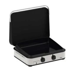 À utiliser en extérieur, cette plancha trouvera parfaitement sa place sur une table ou un chariot au sein de votre jardin. Avec ses dimensions de 66 x 57 x 24 cm, elle est suffisamment compacte pour vous permettre de la ranger facilement, et son poids de 36 kg vous permettra de la déplacer au besoin. Niveau alimentation, cette plancha fonctionne au gaz (butane ou propane), il faudra donc vous équiper en conséquence. Une fois votre plancha installée, vous n’avez plus qu’à soulever le couvercle, et c’est parti pour les grillades.