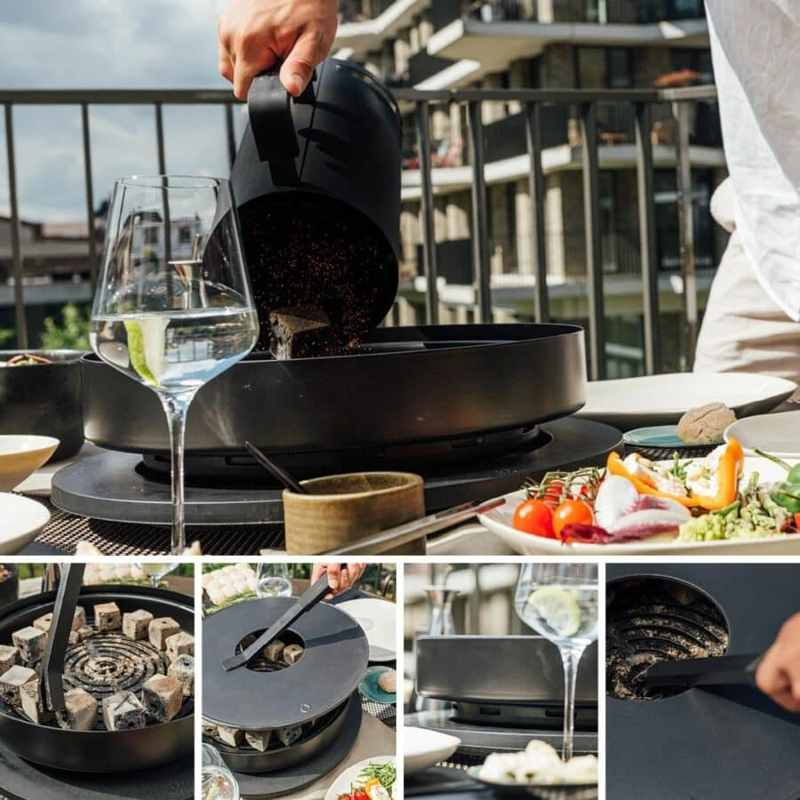Cette plancha-grill de table est parfaite pour prĂ©parer des plats variĂ©s et sains pour un petit nombre de convives. La cuve en acier laquĂ© noir offre une grande rĂ©sistance Ă la tempĂ©rature des flammes et la plaque en fonte permettra de retenir longtemps la chaleur pour cuire vos aliments de façon homogĂšne. Pour faciliter le dĂ©marrage des flammes, le Ofyr TablâO est Ă©quipĂ© dâune cheminĂ©e dâallumage.