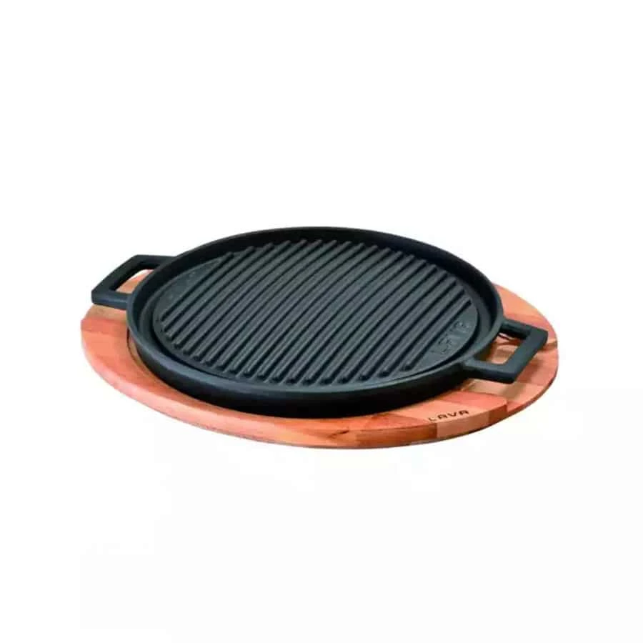 Lâaccessoire idĂ©al pour dĂ©couvrir de nouvelles mĂ©thodes de cuisson. Cette plancha rĂ©versible est fabriquĂ©e en fonte ce qui la rend compatible avec tous les types de feux et de fours. Avec un diamĂštre de â 34 cm, cet accessoire dispose dâune grande surface de cuisson pour rĂ©galer tous vos invitĂ©s. La plancha est Ă©quipĂ©e dâune plaque de cuisson standard et peut se retourner sur une grille de cuisson idĂ©ale pour rĂ©aliser de superbes grillades. GrĂące aux poignĂ©es intĂ©grĂ©es et Ă la base en bois de hĂȘtre, vous pourrez facilement transporter et poser votre plancha pour servir vos invitĂ©s.