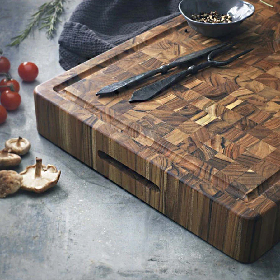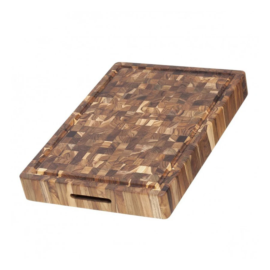 Véritable accessoire professionnel, cette planche à découper billot en teck possède des dimensions de 50,8 x 35,6 x 6,4 cm, idéales pour découper facilement une grande quantité d’aliments ou des pièces de grande taille. Fabriquée en bois de teck, cette planche à découper bénéficie d’une grande résistance aux chocs et aux rayures. De plus, la haute teneur en huile naturelle du bois protège les lames de vos couteaux et garde leur tranchant intact.