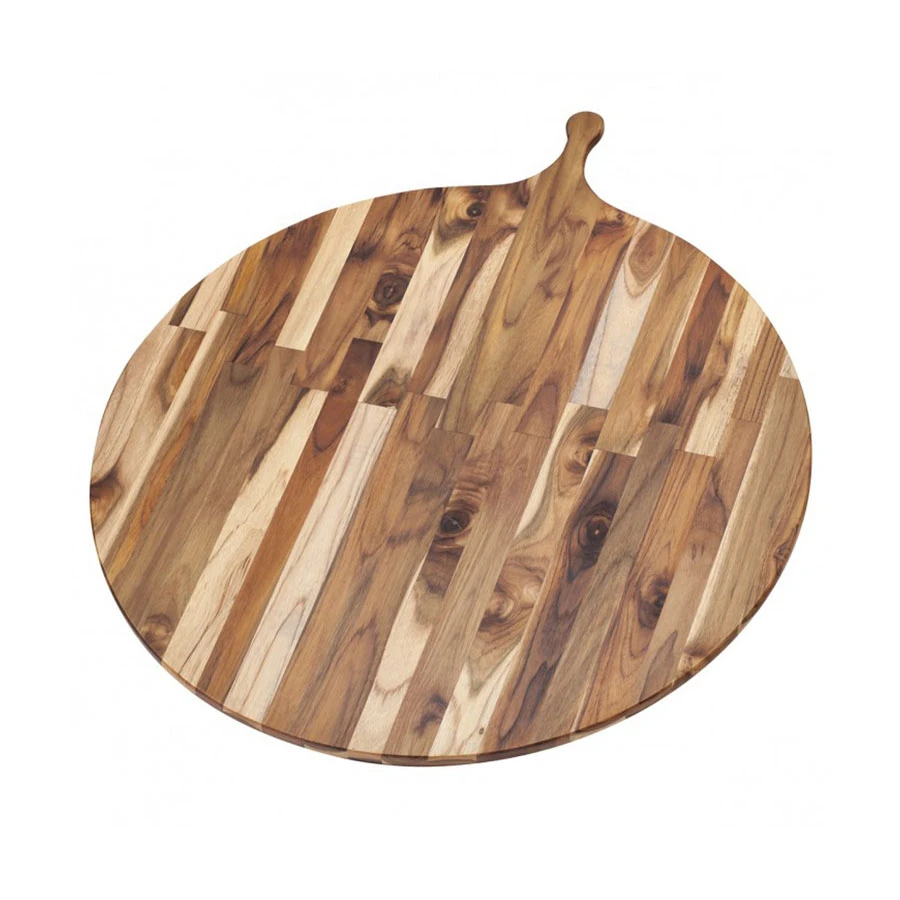 Munie de dimensions impressionnantes de 82,6 x 71,1 x 1,3 cm, cette planche de présentation en teck est l’accessoire idéal pour épater vos invités lors d’un apéritif ou pour une soirée pizza. Le bois de teck est un matériau très robuste et parfaitement étanche, très apprécié pour la fabrication de bateaux ou de mobilier de jardin. Très résistant aux chocs et aux rayures, ce bois a pour particularité une haute teneur en huile naturelle et un grain de bois dur, ce qui protège également le tranchant de vos couteaux pendant la découpe. Cela fait donc de cette planche un accessoire de dressage parfait pour des tapas ou une pizza.