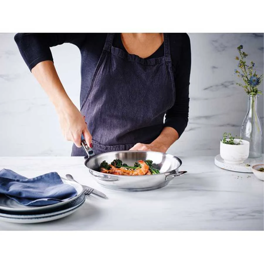 L’intérieur en inox de la poêle est parfait pour saisir les viandes rouges, vous garantissant une cuisson précise et maîtrisée. De plus, son triple fond capsulé assure une conservation et une diffusion optimale de la chaleur, garantissant une cuisson uniforme de vos aliments. Cette poêle à frire est ainsi compatible avec tous les types de feux, y compris l’induction et peut également être utilisée au four jusqu’à 200°C. Vous pouvez ainsi passer de la cuisson sur la cuisinière à la finition au four sans changer de plat.