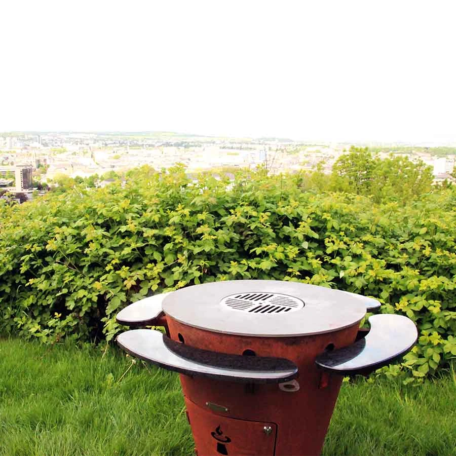 Le granit de ces tablettes pour brasero plancha Remundi Caesar est solide et résiste aux rayures.